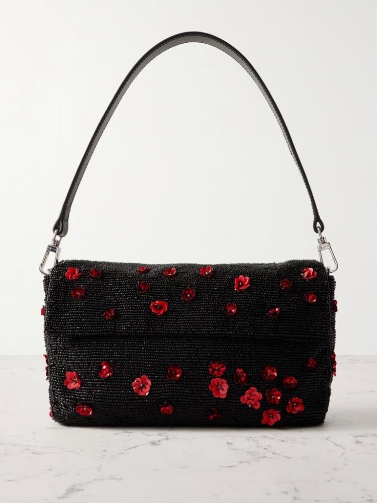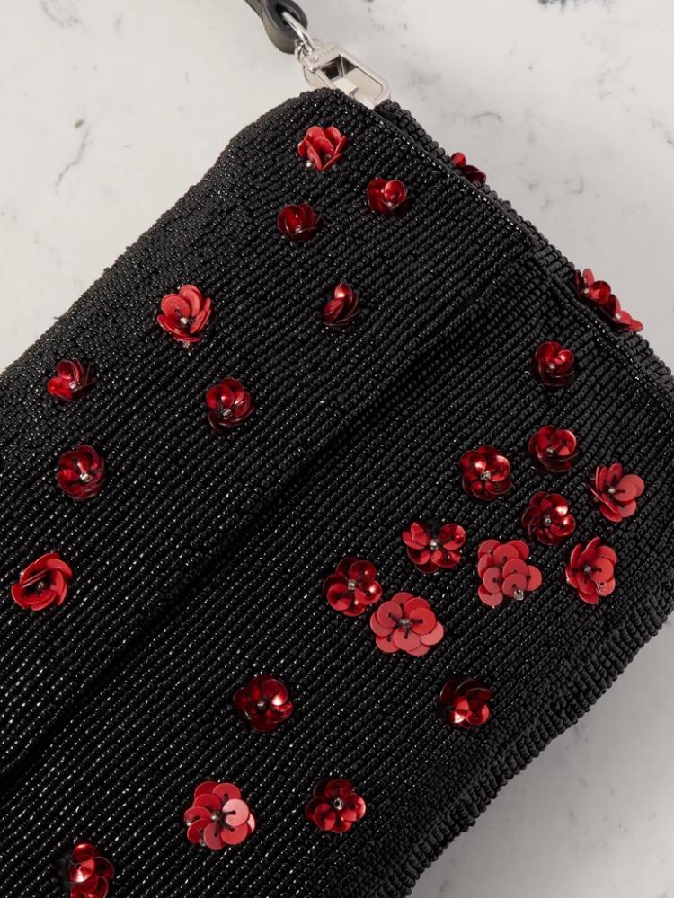 مطرزة بالخرز باللون الاسود مع ورود حمراء صغيره لاطلاله فخمه للمناسبات ، حجم متوسط يناسب احتياجاتك اليومية ( ايفون ، عطر، محفظة، مفاتيح، مكياجك اليومي)